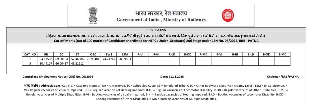 | RRB Ranchi | Result PDF | Cut-Off List |